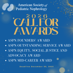 Read MoreASPN Call for 2026 Award Nominations ASPN has four awards to recognize our outstanding members doing great work. We hope you’ll take time to nominate either yourself or your deserving colleagues. ASPN Founders’ Award Recognizes individuals who have made a unique and lasting contribution to the field of pediatric nephrology.…